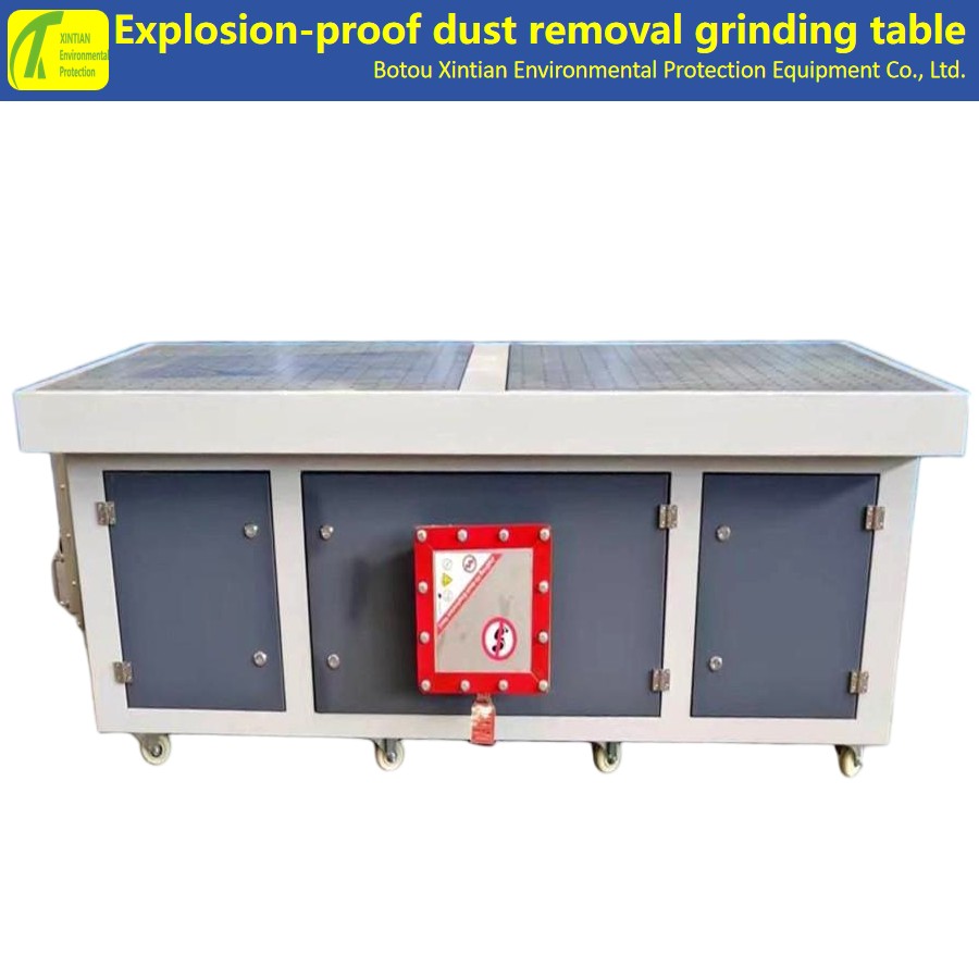 Brúsny stôl na odstraňovanie prachu odolný voči výbuchu je zariadenie, ktoré kombinuje funkcie brúsenia a zachytávania prachu. Je navrhnutý tak, aby rýchlo odstraňoval prach a nečistoty vznikajúce pri brúsení plochých obrobkov, udržiaval čisté pracovné prostredie, chránil zdravie operátora a zlepšoval efektivitu brúsenia. Nižšie je uvedený podrobný popis: